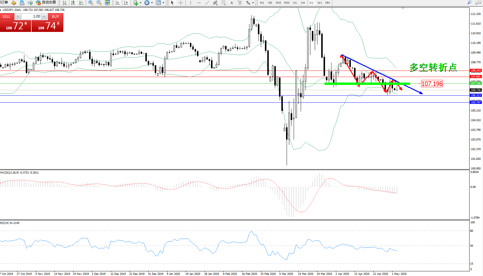 美元兑日元跌0.16%106.74,一定程度上受到债券收益率上升的支撑;日本首相将紧急状态延长到5月末。日元受到避险需求的支撑,全球贸易及宏观环境存诸多不确定性,而日本首相安倍晋三表示,在结束疫情方面取得了积极进展,将采取包括减免房租、工资补贴在内的各种措施,将评估是否需要派发更多现金。医疗前线局势仍旧紧张,对不能像计划那样解除紧急状态感到遗憾,已收到瑞德西韦的特别批准申请,将迅速为瑞德西韦办理特别审批,法匹拉韦的临床试验进展顺利,将争取在本月底前批准法匹拉韦,将采取包括减免房租、工资补贴在内的各种措施,将评估是否需要派发更多现金,如果需要,会考虑限制个人自由,法匹拉韦对用其治疗的3000例病例有部分作用。