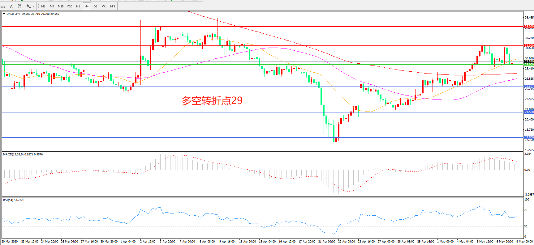 周四(5月7日),油价的走势可以说非常震荡,在亚盘时段,沙特上调销往欧美的所有原油和大部分销往亚洲原油的官方售价,提振了原油价格,布伦特原油一度逼近32美元一线,可惜未能突破,最终收报29.55美元/桶。