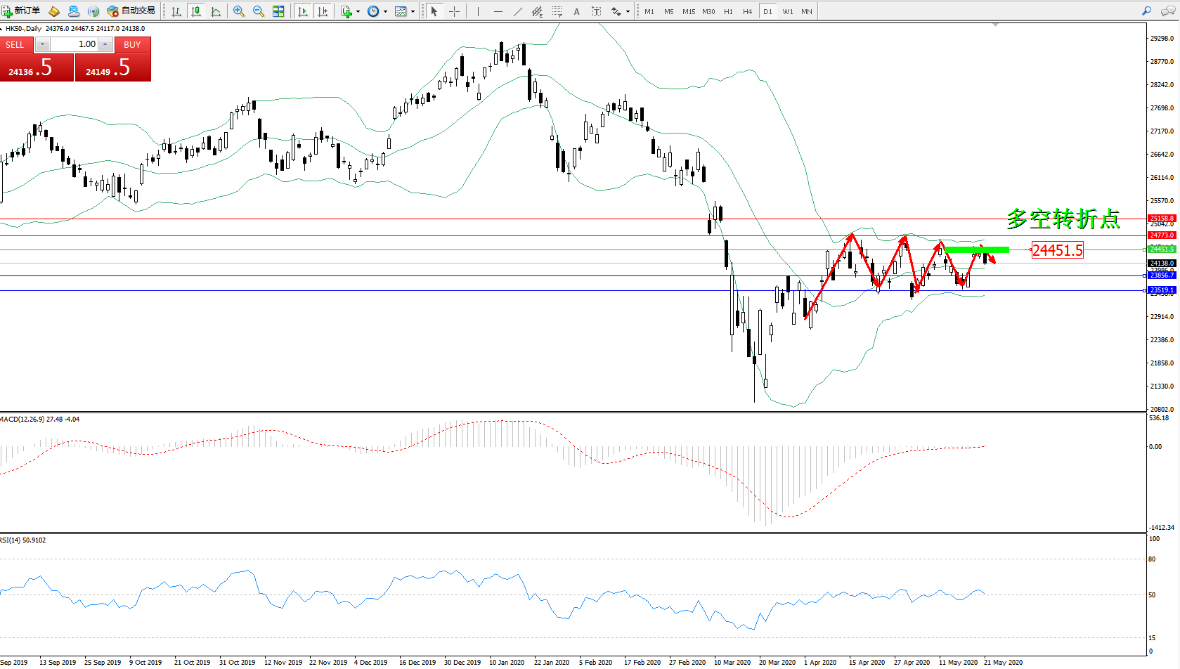 香港恒生指数5月21日(周四)收盘下跌119.92点,跌幅0.49%,报24280.03点;港股三大指数收跌,生物医药B类股午后全线大跌, 康希诺生物-B跳水暴跌13%,或与牛津ChAdOx1 nCoV-19疫苗宣告失败有关;半导体、在线教育、体育用品、航空股、濠赌股皆现普跌行情,三大航空股均跌超2%,中芯国际大跌超7%;前期强势的SaaS概念股全部走低,中国有赞跌逾5%。美国股市显示出自3月的大幅下跌中复苏的迹象,但许多基金经理对美国股市的前景并不乐观。投资者应仔细考虑在当前环境下购买美国股票是否正确;外围股市中概股普跌,美参议院通过一项新法案或导致中概股大量退市。
