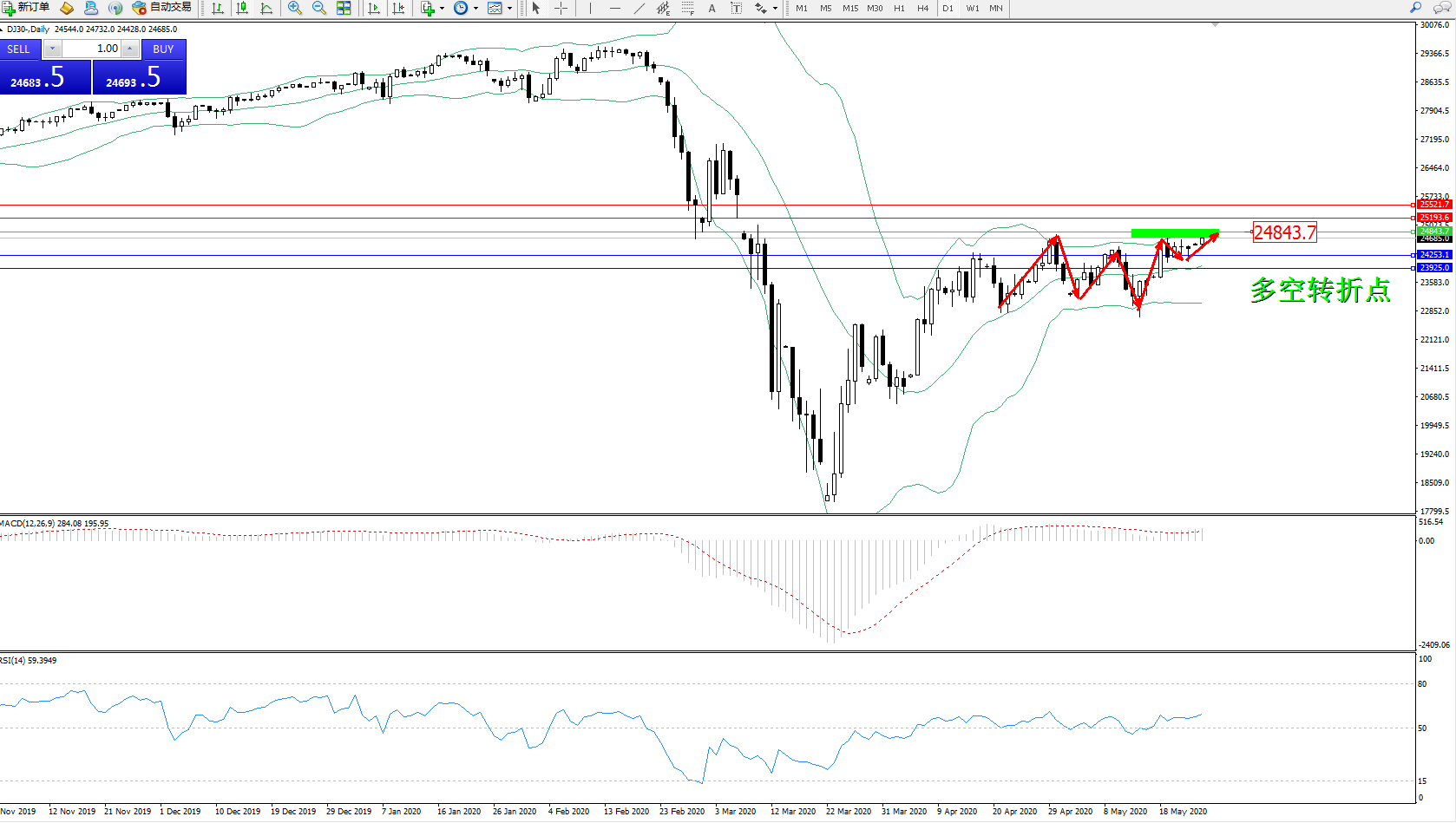 道琼斯指数上交易日收盘下跌9.00点,跌幅0.04%,报24465.16点。美国三大股指周五收盘涨跌不一,本周走势动荡,投资者在对经济重新开放的乐观情绪和贸易局势再度紧张之间摇摆。科技股帮助纳斯达克综合指数跑赢大盘,卡特彼勒和强生对道琼斯工业平均指数构成压力。市场已经出现疲态,考虑到股市的V形回升走势,疲态也是合情合理的。美联储将在526-29日以每日50亿美元的速度买入国债,上周为60亿美元/日。随着地缘政治紧张局势再次升温,加剧了人们对已经受冠状病毒大流行重创的全球经济复苏缓慢的担忧。