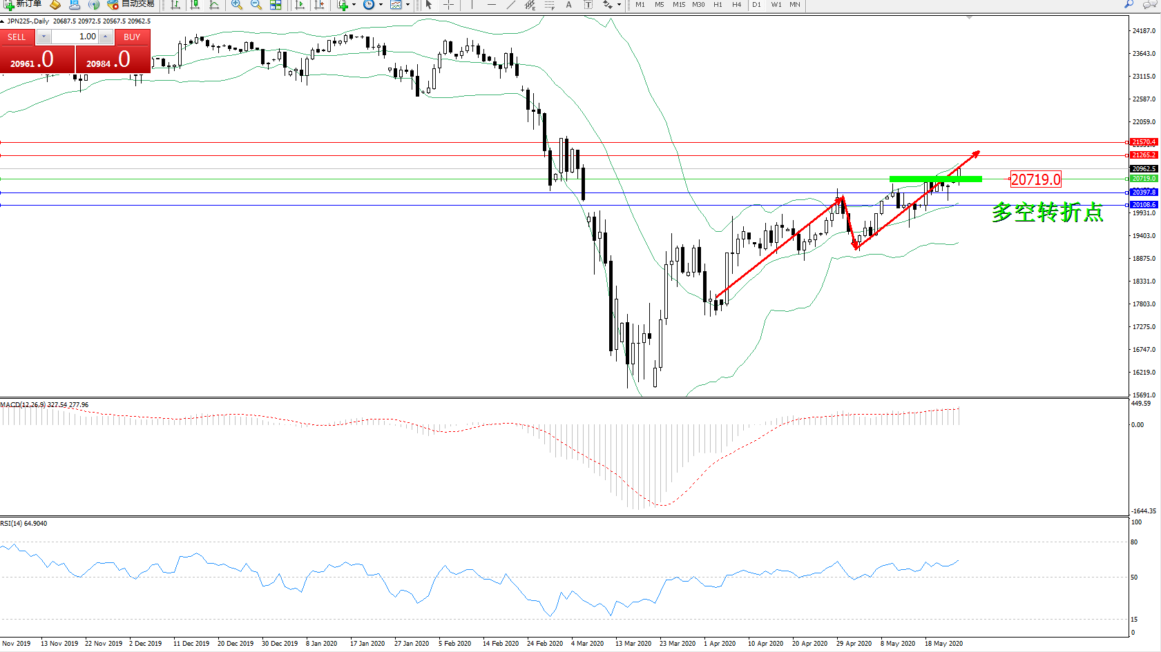 日经225指数525日(周一)收盘上涨334.34点,涨幅1.64%,报20722.50点。日股受潜在刺激计划的消息提振上涨,增强了风险偏好。不过国际关系趋于紧张,日本正考虑解除东京及其他仍面临限制地区的紧急状态,同时考虑推出接近1万亿美元的新刺激计划,以帮助企业渡过新冠疫情危机。日本首相安倍晋三将在25日晚间的政府对策总部会议上,解除基于新冠病毒特别措施法在北海道、埼玉、千叶、东京、神奈川5个都道县仍在持续的紧急事态宣言。政府上午召开向专家倾听意见的咨询委员会,就解除征询意见,并获得了同意。