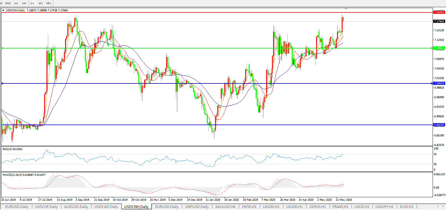 交易策略: 在7.1000之上,看涨,目标价位为7.2000,然后为7.3000。