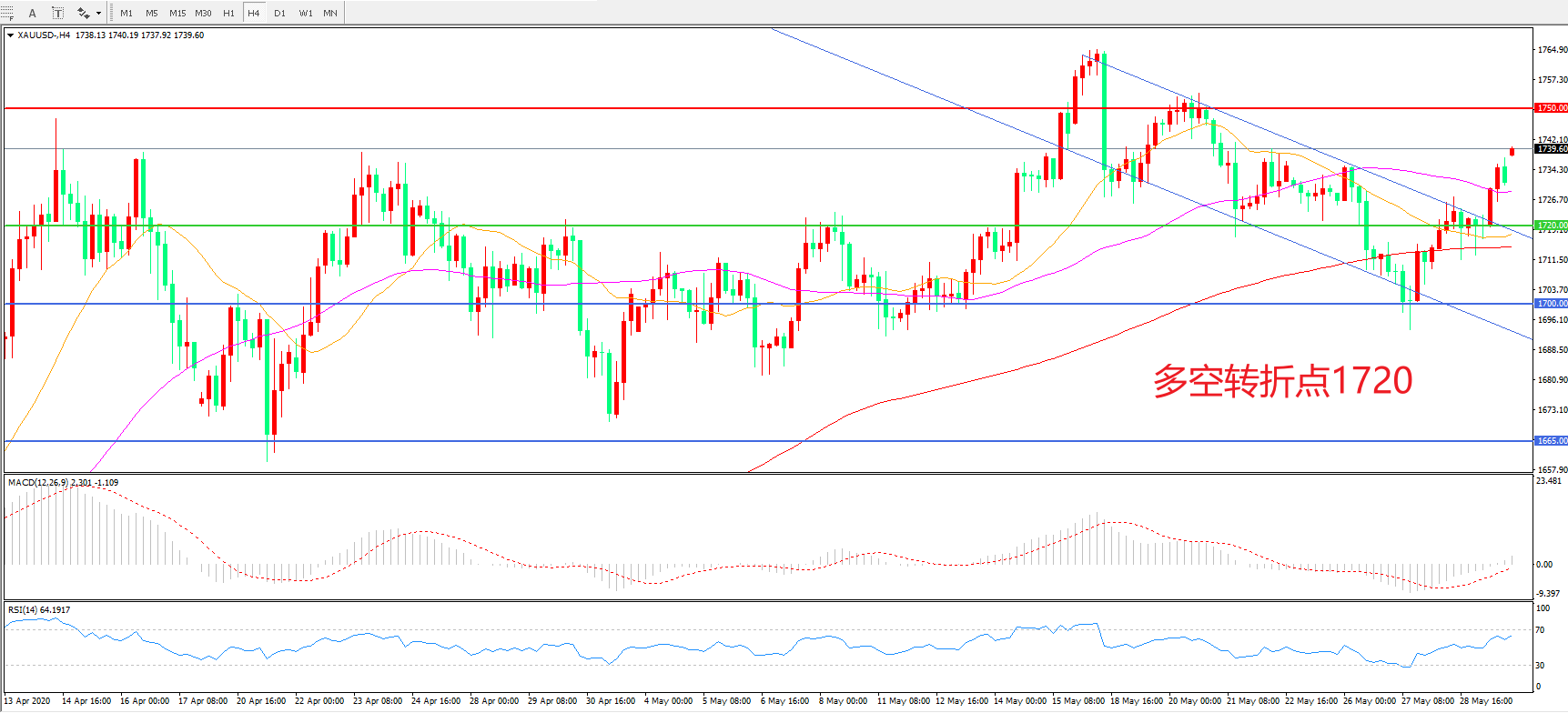 交易策略:  在1720.00之上看涨,目标1750.00   1785.00