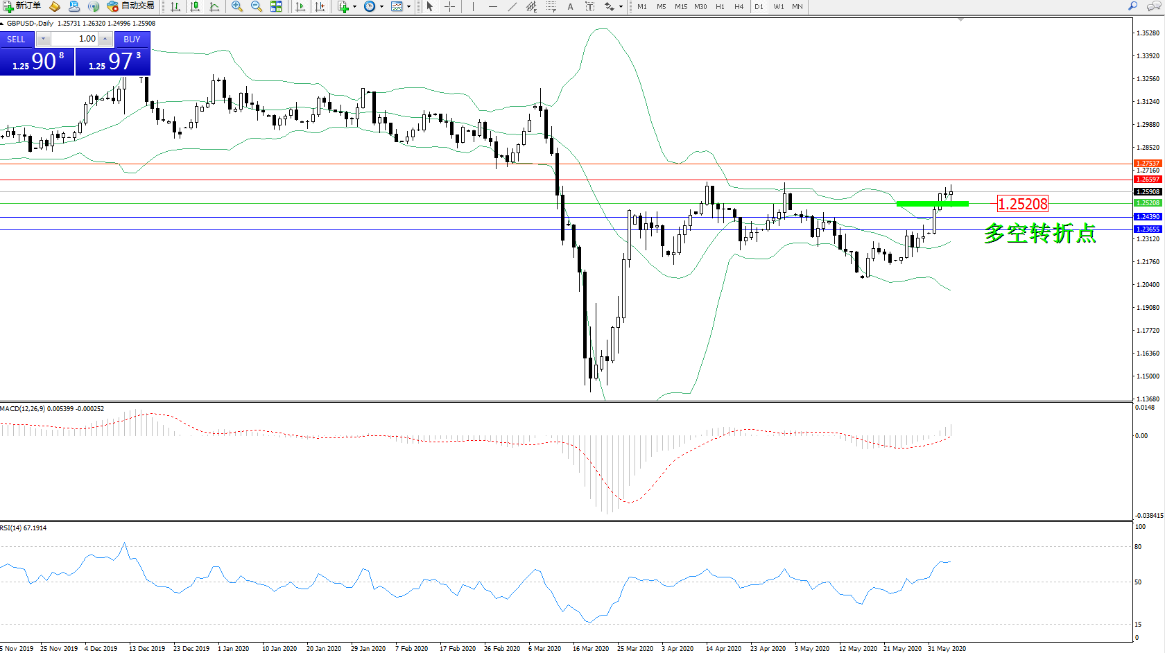 交易策略:1.25208上方看涨,目标1.26597、1.27537