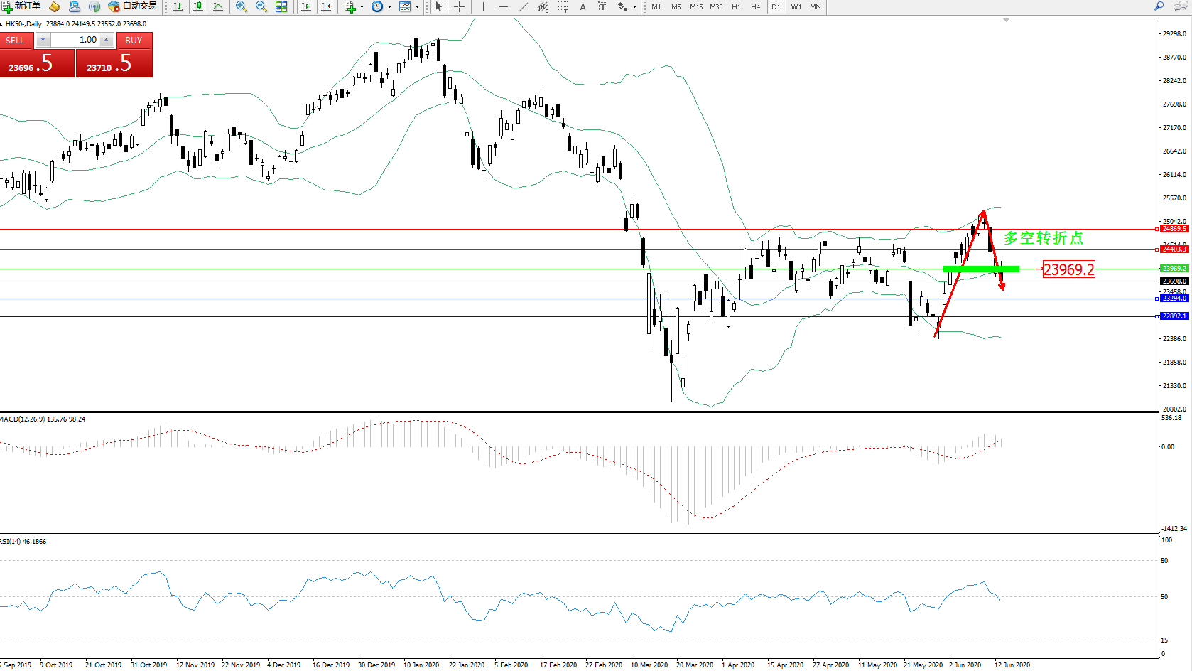 香港恒生指数今日午后走弱,最终收盘下跌2.16%,收报23776.95点,失守24000点整数关口。低估值具有长期吸引力,且有望抵御外部冲击;中概股回归将进一步提升香港市场的吸引力。香港市场整体较低的估值水平将为投资者提供更好的长期风险收益比,并抵御潜在的外部波动。虽然海外资金持续低迷,但南向资金流入规模有望保持强劲势头,这也与中国家庭资产配置转型趋势保持一致。随着外围股指期货暴跌和原油走弱,市场资金再度回流美元,美元指数止跌回升,美国部分州如加州、德州、亚利桑那、佛罗里达等地的卫生事件近期均有所加重,市场担忧卫生事件二次爆发令经济复苏受阻。消费、出口股普跌。