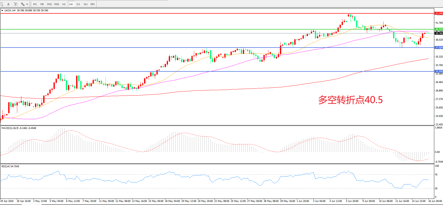 周一(6月15日),风险情绪仍然主导着市场短期走势,日内美股市大幅下挫,油价出现大跌,美盘时段股市又在美联储吹风下出现了从低位的大幅反弹,布伦特逆市反弹,收报39.86美元/桶。OPEC减产执行情况乐观在一定程度上支撑了短期价格,但从长期看疫情仍是影响价格变化的核心因素。