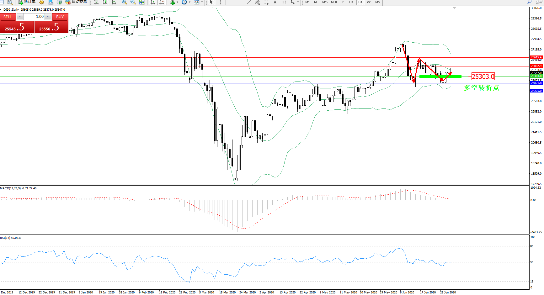 道琼斯指数7月1日(周三)收盘下跌77.90点,跌幅0.30%,报25734.97点。美国6月ADP就业人数录得增加236.9万人,创下历史最大增幅,但不及预期的增加290万人,市场认为美联储会继续压低利率,刺激经济。美联储6月会议纪要显示,美联储官员认为应更明确表达利率路径前瞻指引,在购债方面也更明确,暗示青睐将未来行动与通胀挂钩,对是否控制收益率曲线存疑。纪要公布后,三大美股指短线走高,10年期美债收益率上扬。由于担心第二波病毒感染,且全球央行加大刺激措施并保持低利率以缓解大流行对经济的打击,上个季度金价飙升超过13%。