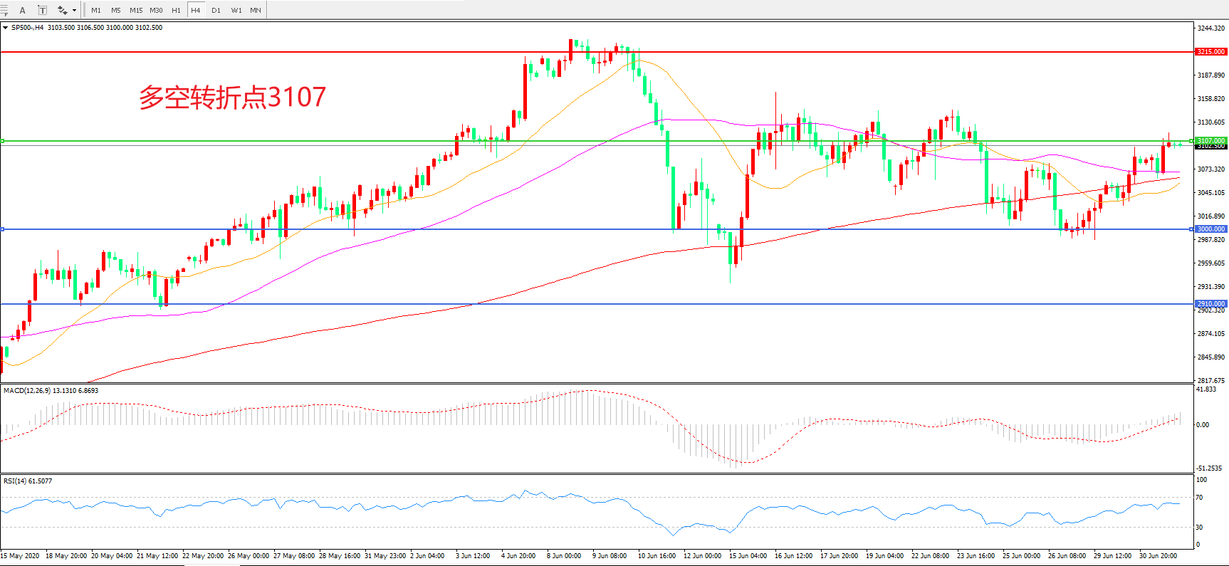 交易策略:在3000.00之上看涨,目标3107.00 3215.00