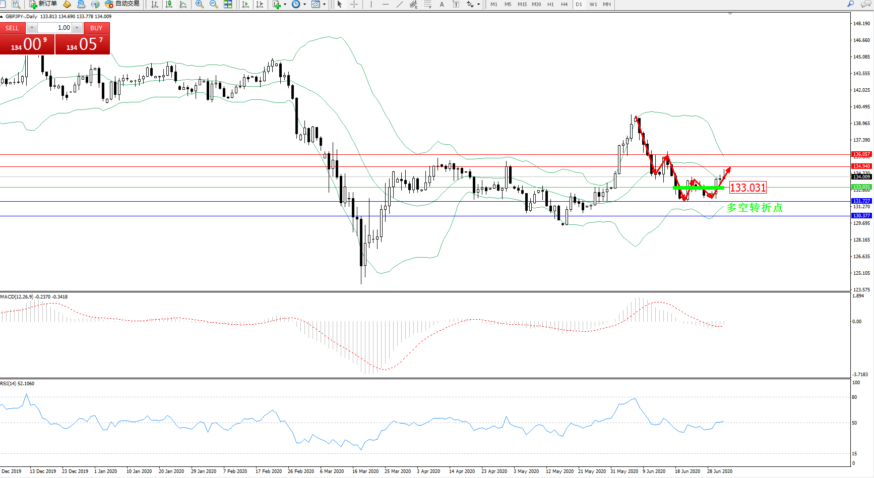 英镑兑日圆弱势震荡上移至134.040附近震荡,根据双方的声明,后续磋商仍将按计划下周在伦敦继续进行,政府官员称提前结束谈判并不表示双方已经谈崩。分歧包括脱欧后英国是否应继续受到欧洲法律的约束,如何控制在英国水域内的捕鱼权,以及欧洲法院在维护任何协议方面应发挥何种作用。多数受访者对英国与欧盟的进一步过渡期谈判前景仍持有乐观态度,而这意味着,在美联储继续强化宽松打压美元指数的大背景下,作为经济结构相对健康的英国经济充满韧性,近期英国政府强力推动经济重启,此外约翰逊也力争更多经济刺激,关于英国脱欧事宜,尽管不确定性依旧,但事实上到底如何冲击英国经济,并无太多证据。
