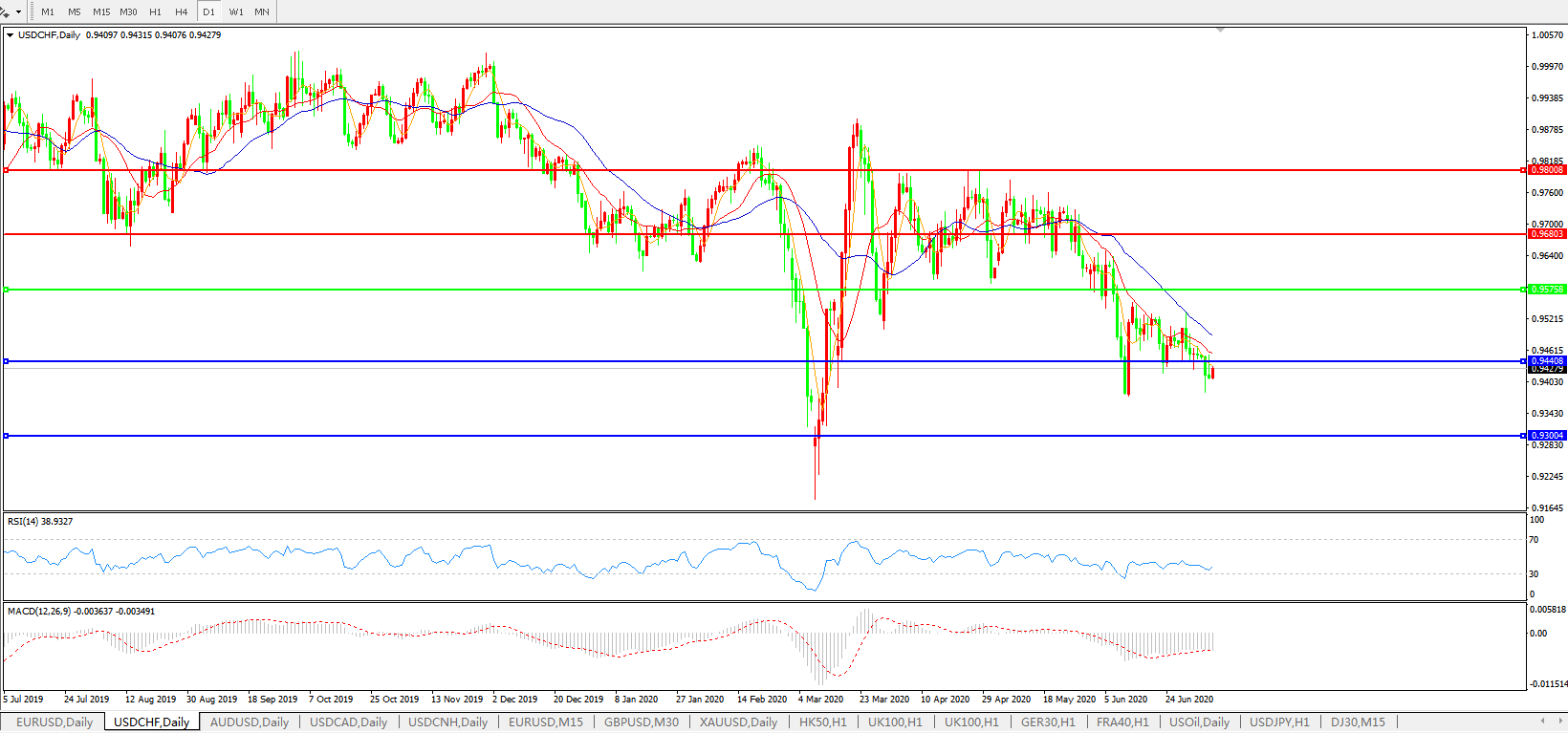 交易策略:0.9575下方看跌,目标0.9440、0.9300