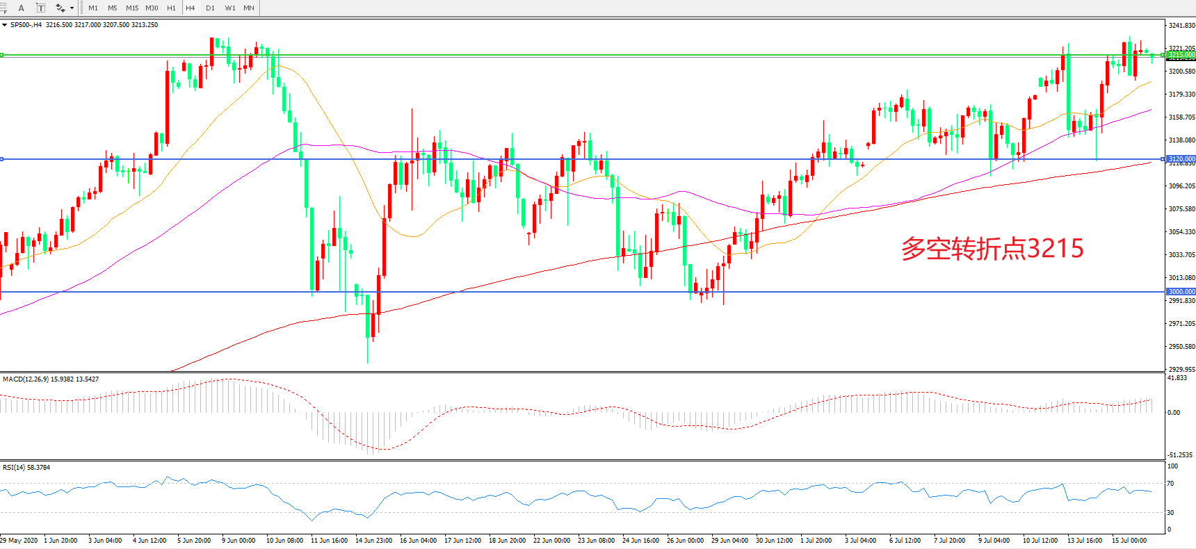 周三(7月15日),受新冠肺炎疫苗利好消息以及高盛财报的提振,标普500震荡上行,收报3218.25点。与经济重启直接相关的股票出现大涨,包括美国航空、美联航,但科技股的疲弱表现让投资者不禁担忧美股的表现。