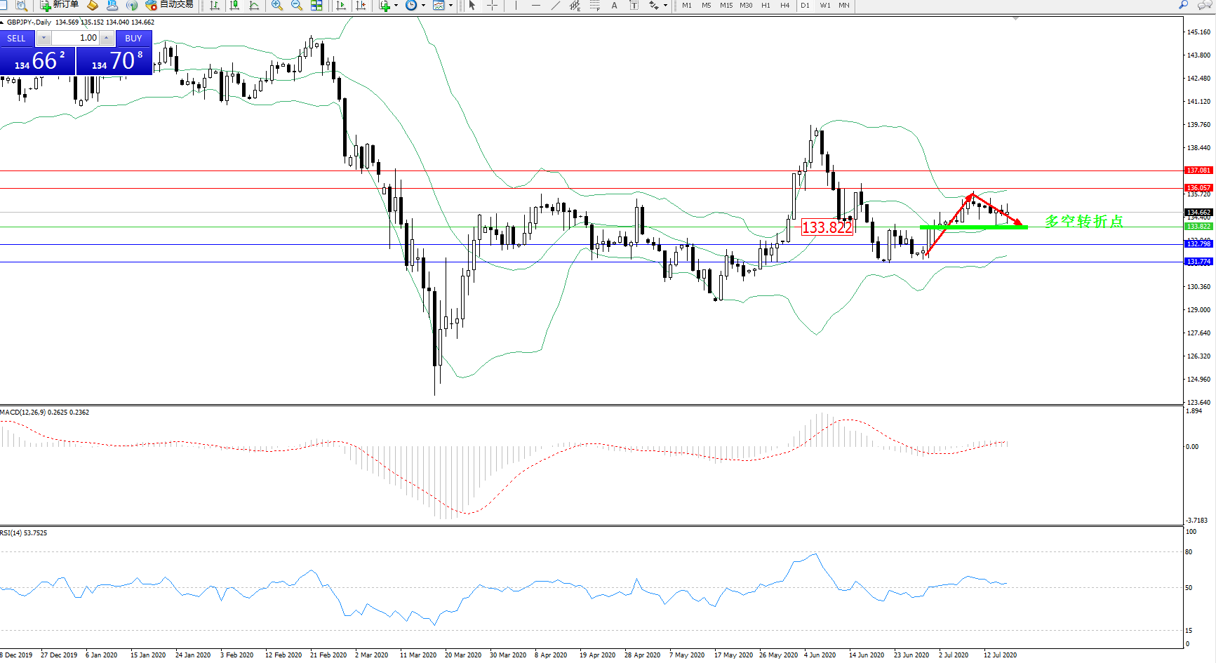 英镑兑美元处于1.34702附近整理,英国首相约翰逊7月15日在议会发表讲话称,政府正在尽其所能保护就业,但是一些工作岗位的损失是不可避免的。疫情被证明是严重的通货紧缩冲击。鉴于失业率可能大幅上升,工资增长走弱并保持疲软,预计该通缩趋势将继续。通胀将持续并大幅低于英国央行的通胀目标;因此,预计英国央行将进一步放宽政策,11月份将利率降至零,以预见的是,到今年年底,英国经济将面临更多的不确定性。届时,政府在疫情期间对企业和工人的支持计划将逐步取消,英国也将退出欧盟,可能不会达成贸易协议。