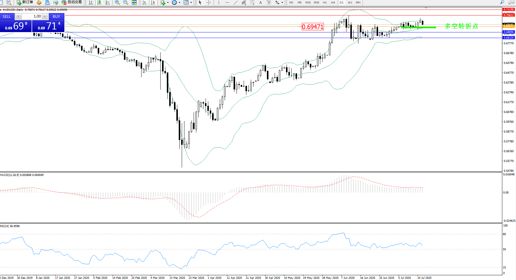 交易策略:0.69471上方看涨,目标0.706220.71198