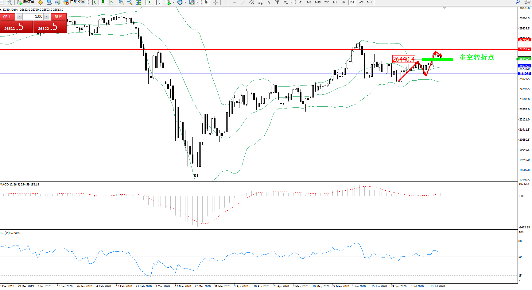多空转折点:26440