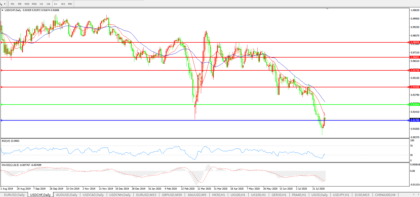 交易策略:0.9300下方看跌,目标0.9170、0.9000