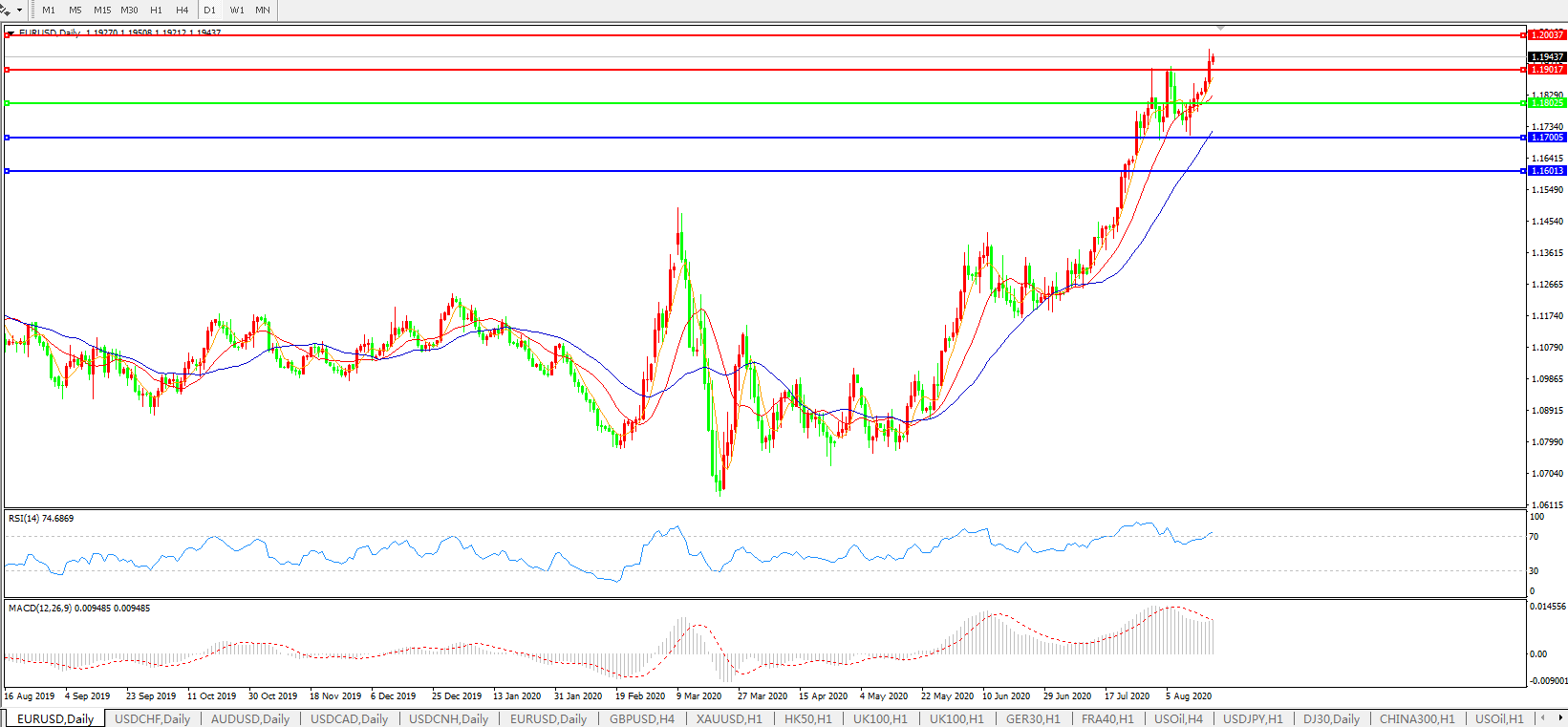 欧元兑美元EURUSD   日线图: