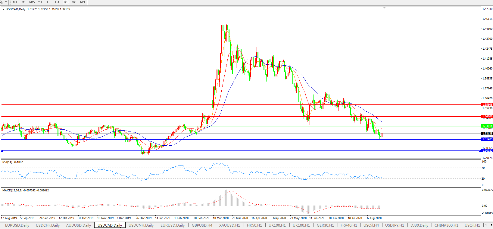 美元兑加元USDCAD    日线图: