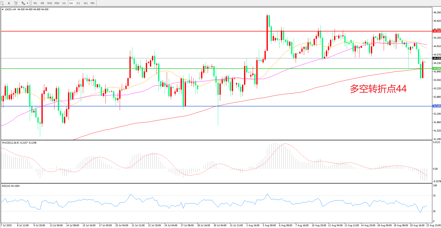 交易策略:  在44.00之上看涨,目标45.50      48.00