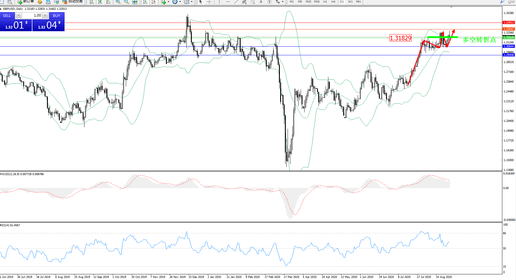 交易策略:1.31829上方看涨,目标1.33047、1.33913