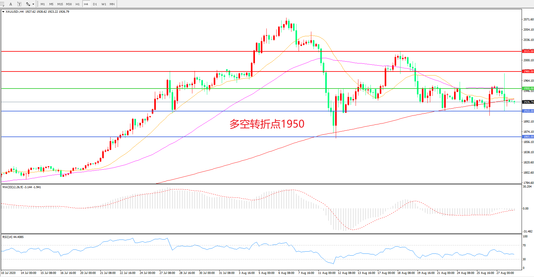 交易策略:在1950.00之下看跌,目标1910.00 1865.00