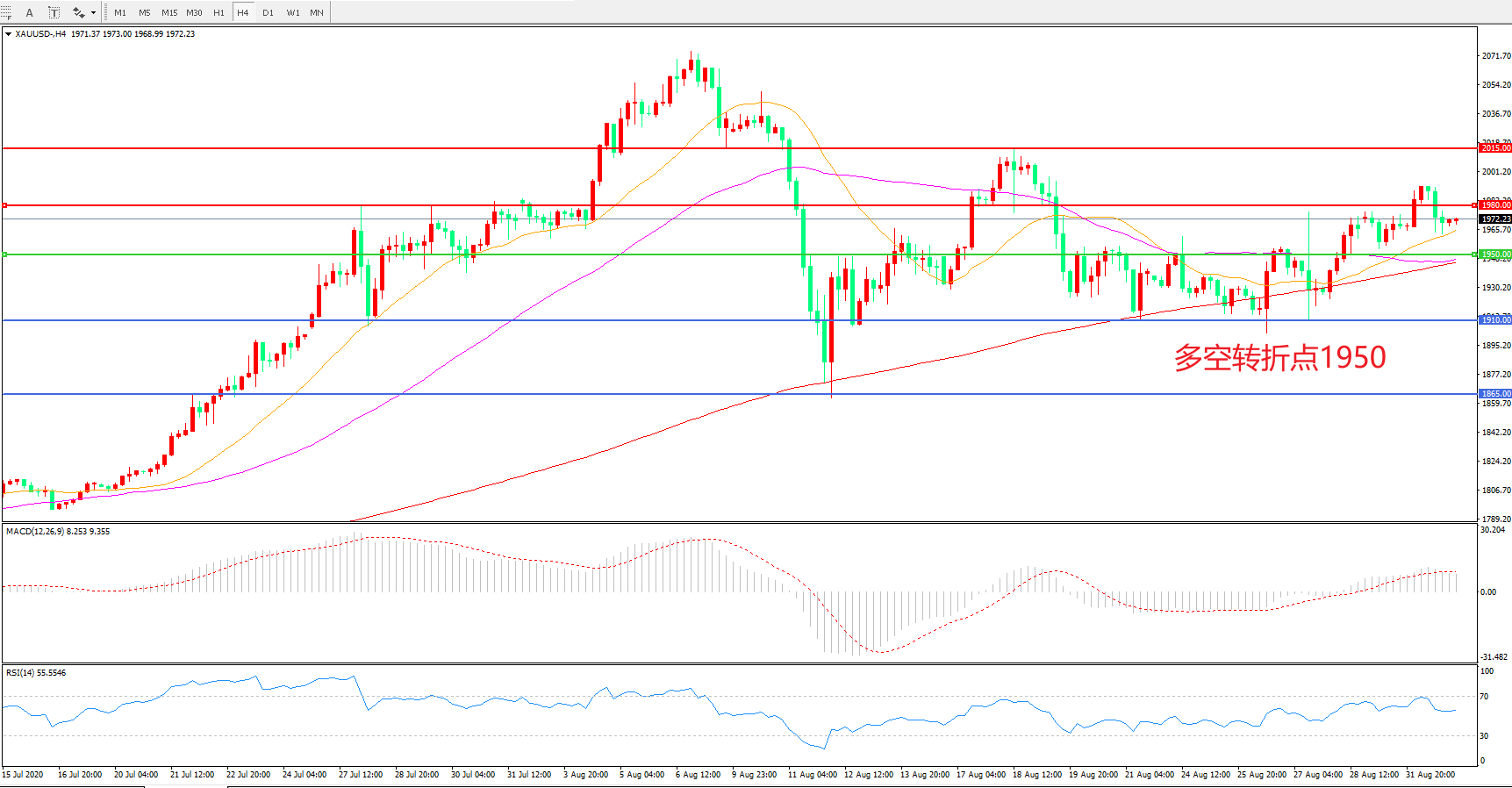 备选策略: 在1950.00之下看跌,目标1910.00 1865.00