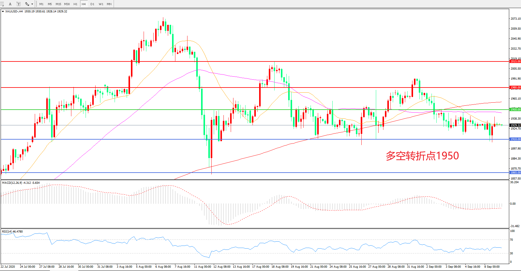 交易策略:在1950.00之下看跌,目标1910.00 1865.00