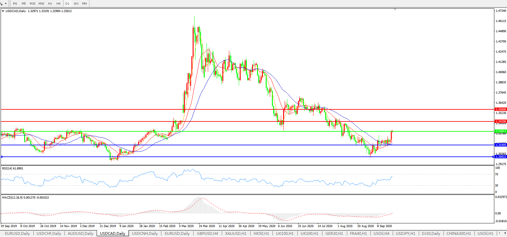 美元兑加元USDCAD    日线图: