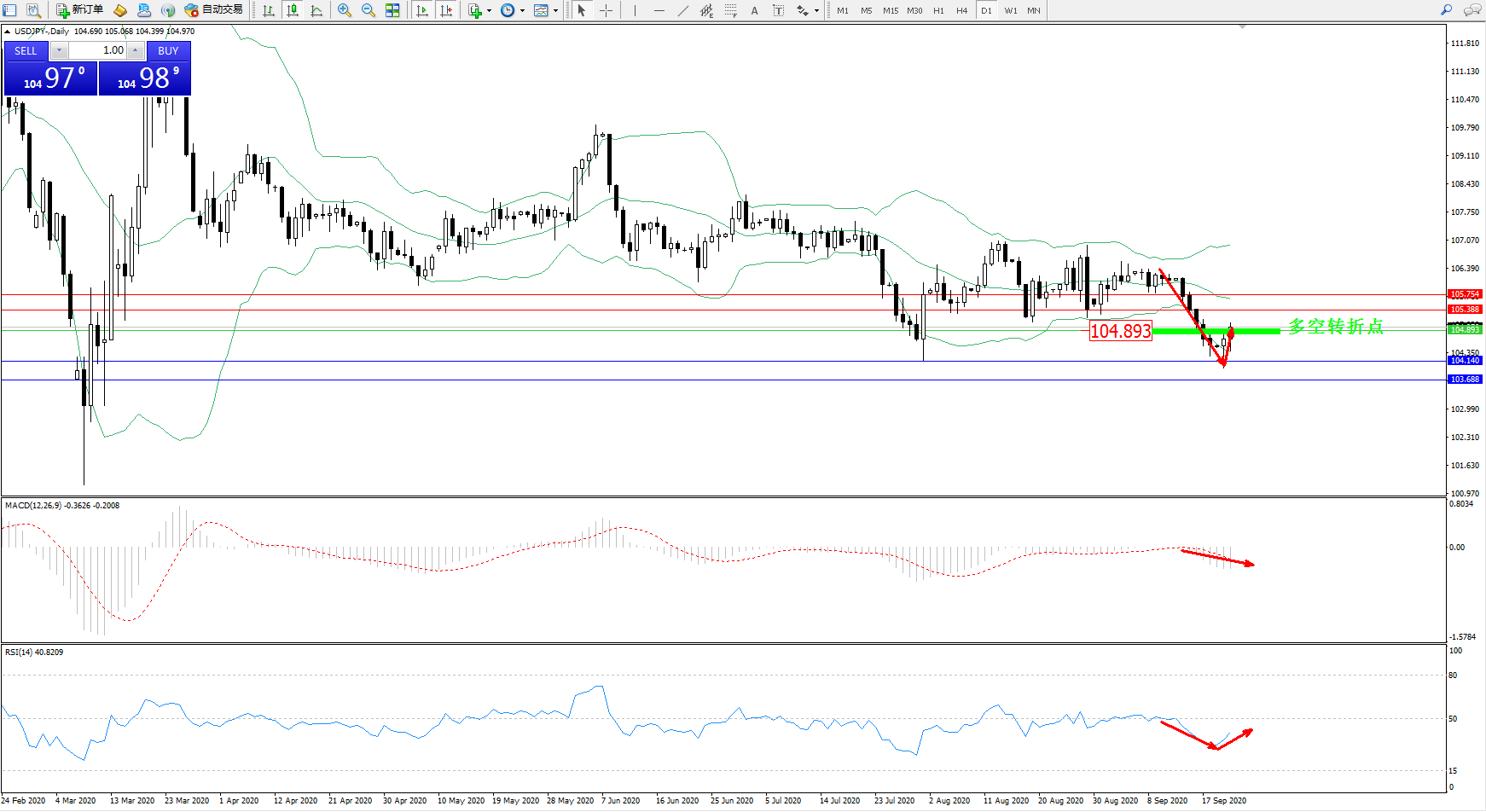 多空转折点:104.893