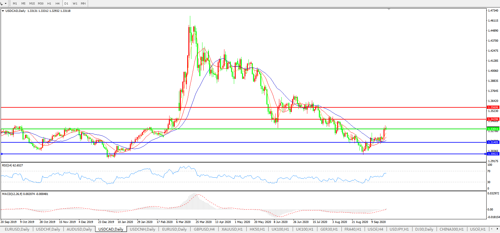 交易策略:在1.3300之上,看涨,目标价位为1.3420、1.3560