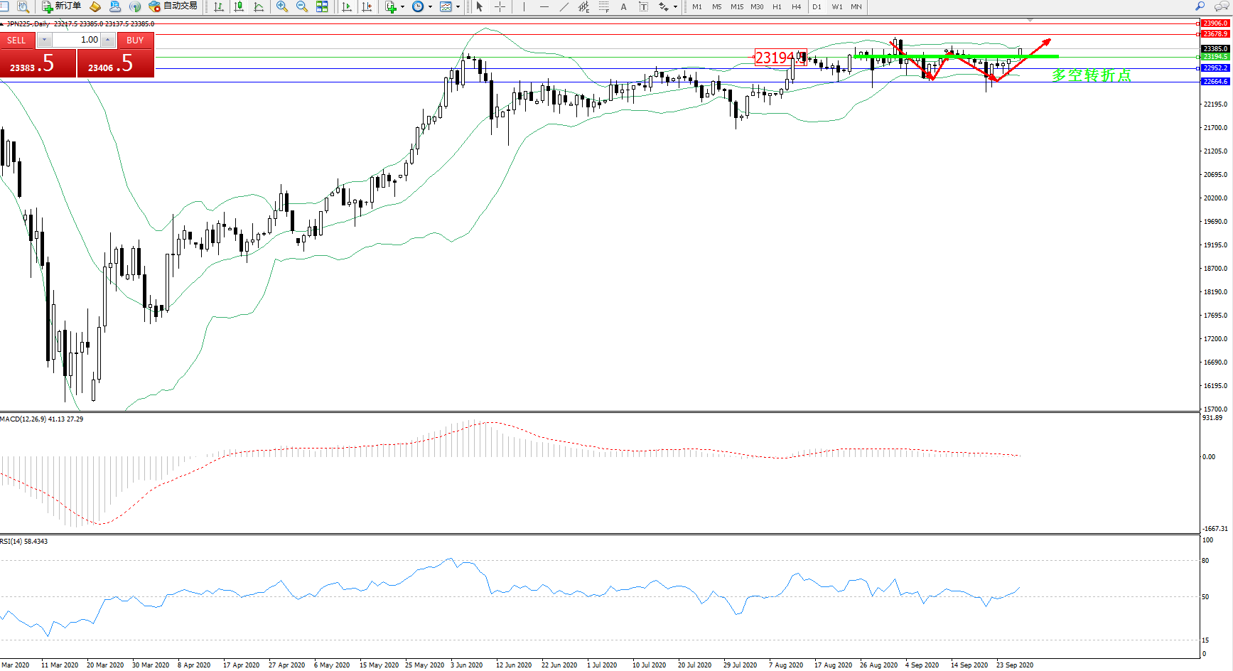 日经225指数9月28日(周一)收盘上涨282.38点,涨幅1.22%,报23487.00点。日本将从10月起分阶段解除旅行警告。报道称,澳大利亚、新西兰、越南等10多个新发病例较少的国家和地区有可能成为首批候选国。日本希望鼓励各国反过来也放松对日本的警告。是否可以旅行将由目的地国家/地区决定。由于新冠疫情的影响,日本政府原则上拒绝了来自159个国家和地区的外国人入境,但随着世界各国以及日本境内的疫情好转,政府将在下月初以3个月以上的中长期逗留者为主要对象,讨论重新开始接受来自全世界的外国人新入境,不仅是商务相关人员,外国留学生的入境限制也将全面解除,但游客继续不在对象内。看得出来,在长达近半年的封锁之下,日本的社会、经济已经受到很大影响,日本政府目前的当务之急已不仅仅是控制感染,还有恢复经济发展。除了考虑放开外国人入境,日本国内促进消费政策的「GoTo」活动最近也一直很活跃,政府预计将于10月把人口众多的东京都也加入「GoTo Travel」折扣的对象,正好赶上日本的赏红叶旺季,届时想必会给日本带来巨大的旅游收益。