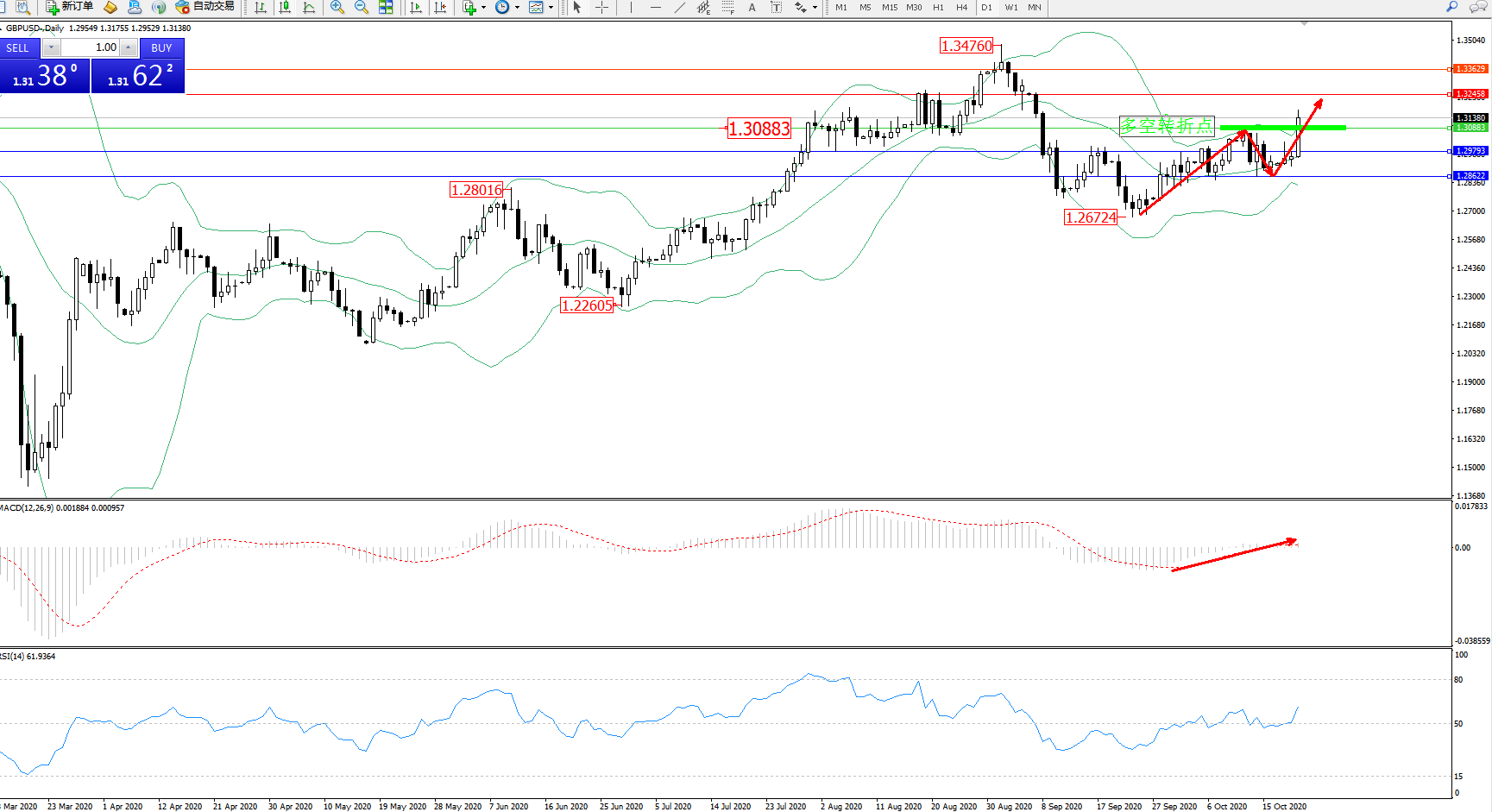 英镑兑美元涨1.55%至1.3149,一度上涨1.8%至1.3177,为9月7日以来最高;欧盟谈判代表称与英国的协议触手可及,进一步提升市场对脱欧协商的乐观预期,此外市场对美国有望在大选前出台财政刺激方案的乐观期望,推升风险资产,也给与英镑支撑。欧盟代表巴尼耶表示,欧盟的态度已经改变,而且直到最后一天才会改变。不过他补充说,欧盟准备在法律文本的基础上讨论所有问题,我们需要基于现有协议的信任,欧盟希望达成协议,将保持坚定和决心,将寻求必要的妥协直到最后一天。欧盟制定的框架不会因与英国达成的雄心勃勃的协议而改变。在谈话中起作用的是对我们离婚后未来关系的适当安排。英国发言人指出,欧盟脱欧谈判首席代表巴尼尔的发言有重要的意义。注意到巴尼尔对当前贸易谈判困难背后问题的重要评论。