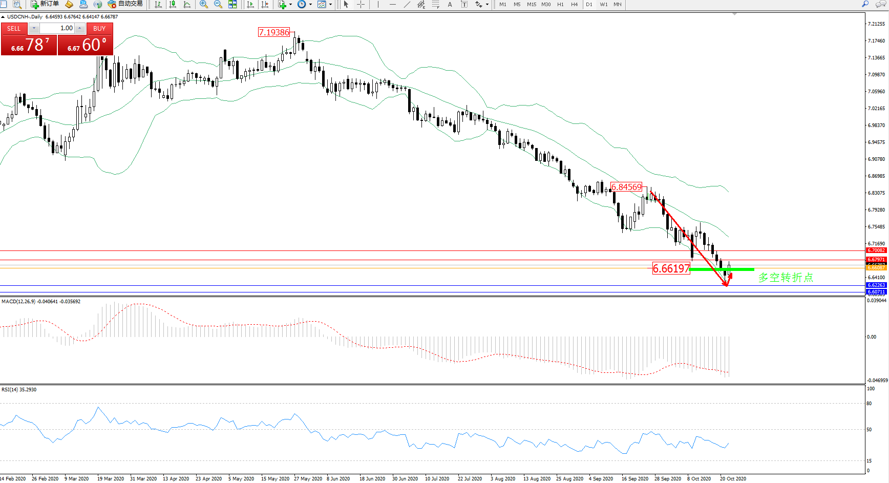 交易策略:6.66197上方看涨,目标6.67971、6.70082