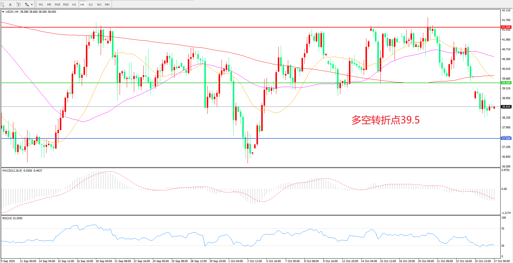 交易策略: 在39.50之下看跌,目标37.50         35.00
