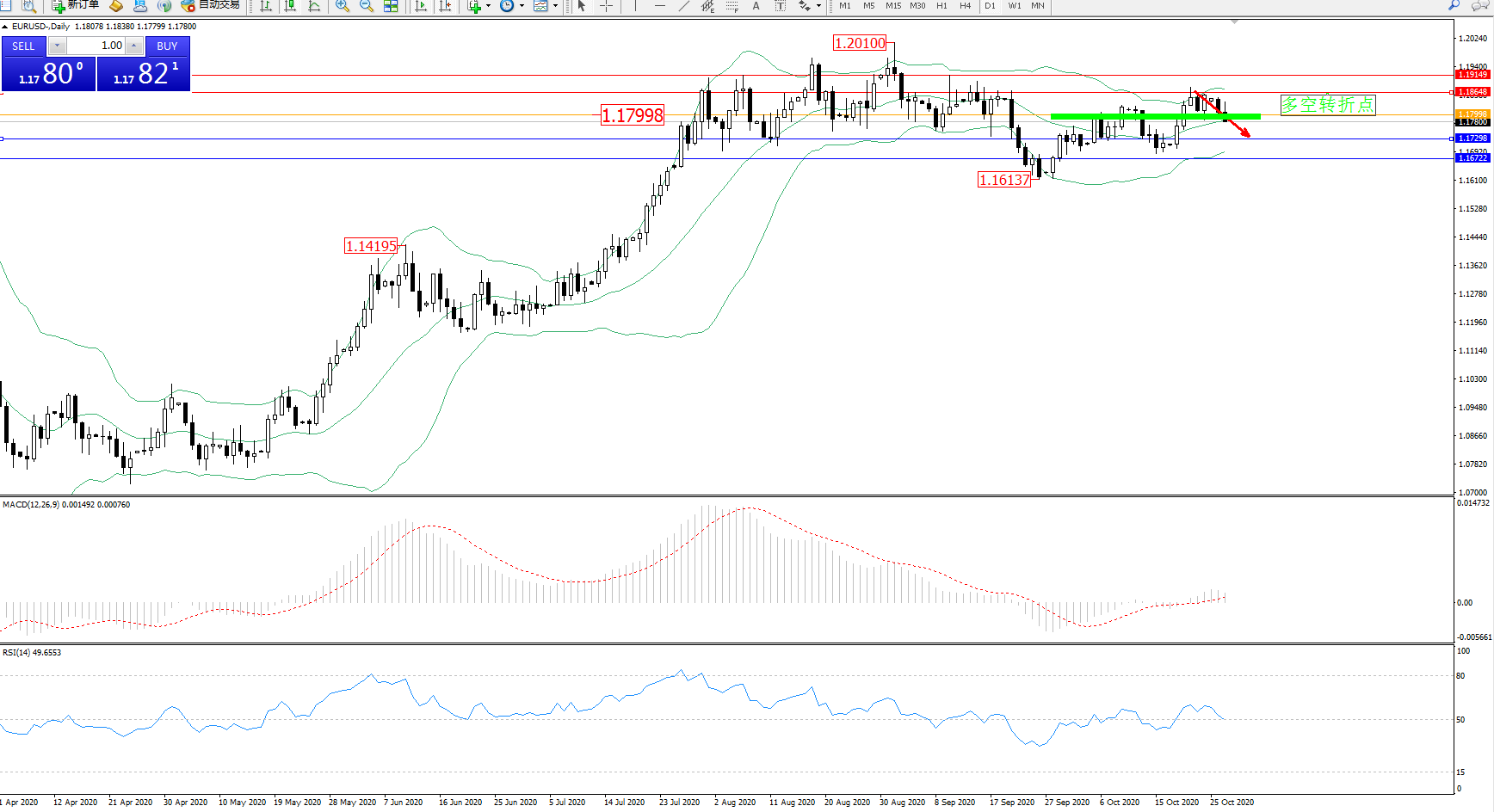 交易策略:1.17998下方看跌,目标1.17298、1.16722