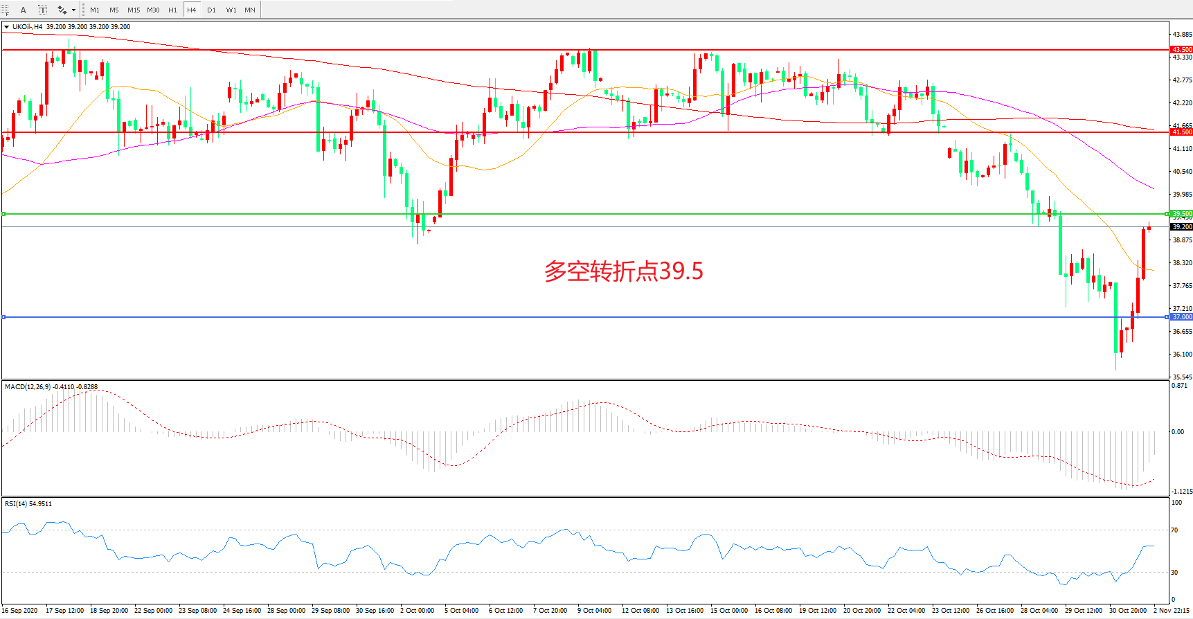 多空转折点:39.50