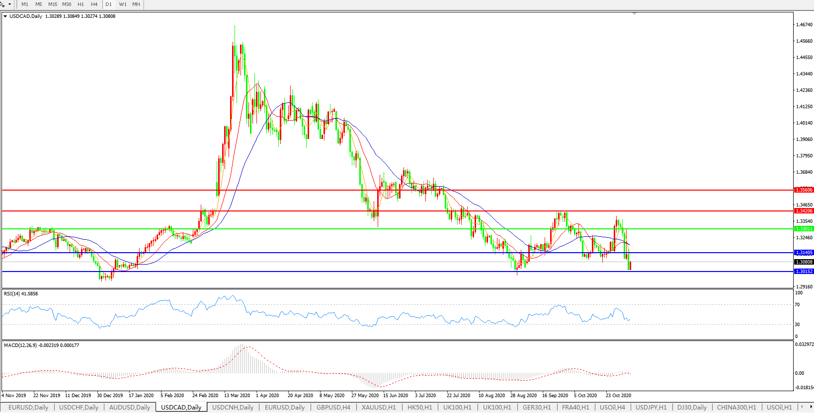 美元兑加元USDCAD 日线图: