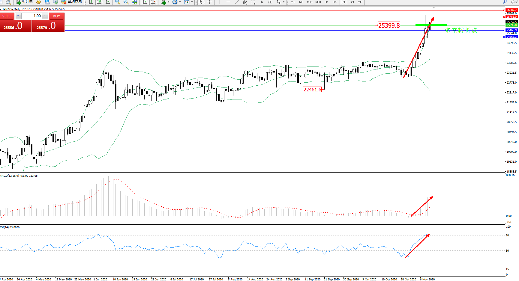 日经225指数11月11日(周三)收盘上涨459.41点,涨幅1.84%,报25365.00点。本执政党高级官员:第3份额外预算方案的资金规模可能会超过10万亿-15万亿日元,疫苗研发获进展带来的消息面狂欢后,市场情绪开始重归谨慎。投资者目光重新投向美国选情及近期财政政策的僵局上,美联储与欧洲央行下一步的宽松预期,正和日本央行当前已经在政策层面上无计可施的状况构成了鲜明反差,疫苗进展超预期,或将加速海外需求复苏进程,从需求端来看重点关注:在疫苗推广落地的情境下,需求复苏将更直接更领先,供给恢复或将略迟于需求复苏,且发达国家的复苏或将早于发展中国家,海外可选消费在疫情期间受到一定程度的抑制,疫苗推广落地后,海外可选消费相关化工产业链需求有望获得显著边际改善。
