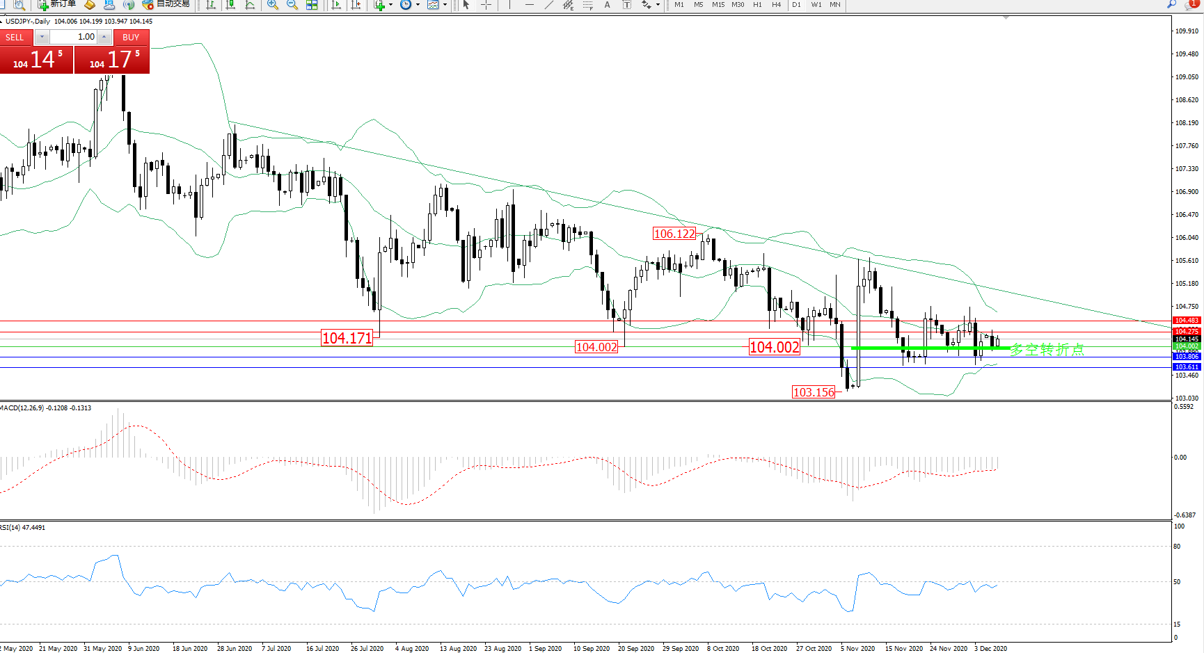 美元兑日圆纠结于低位104.145附近震荡,日本首相菅义伟公布首个刺激计划的部分细节。刺激计划总规模为73.6万亿日元(7080亿美元),其中财政措施(通常包括贷款、投资和支出)规模约40万亿日元。 这与周一彭博获得的刺激计划最终草案中的数字相符。菅义伟在首相官邸表示:“为了保护民众生活和生计,我们编制了这项计划,从而确保就业和企业生存,恢复经济,并为绿色和数字区域等发展提供新的机会。方案中还包括对医疗设施和老年人住房的支持,以及对就业和企业现金流的支持措施。”日本经济第三季度的回升速度快于初步估计。最近几周该国新增病例创纪录可能会令消费者支出降温,如果当地城市继续对出行和活动采取自愿限制,支出受到的影响可能还会加深。菅义伟面临着证明自己有能力维持经济发展势头,同时控制住疫情直至获得疫苗的挑战。否则,他可能会成为日本众多由于无法获得党内足够支持,而执政超不过一年的“短命”首相之一。