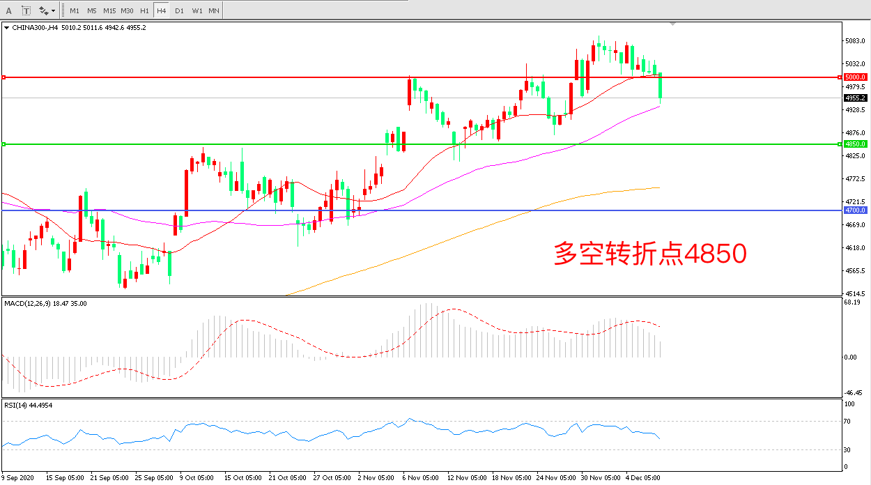 交易策略:在4850.00之上看涨,目标5000.00 5150.00