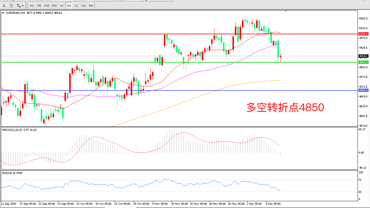 备选策略:在4850.00之下看跌,目标4700.00 4565.00
