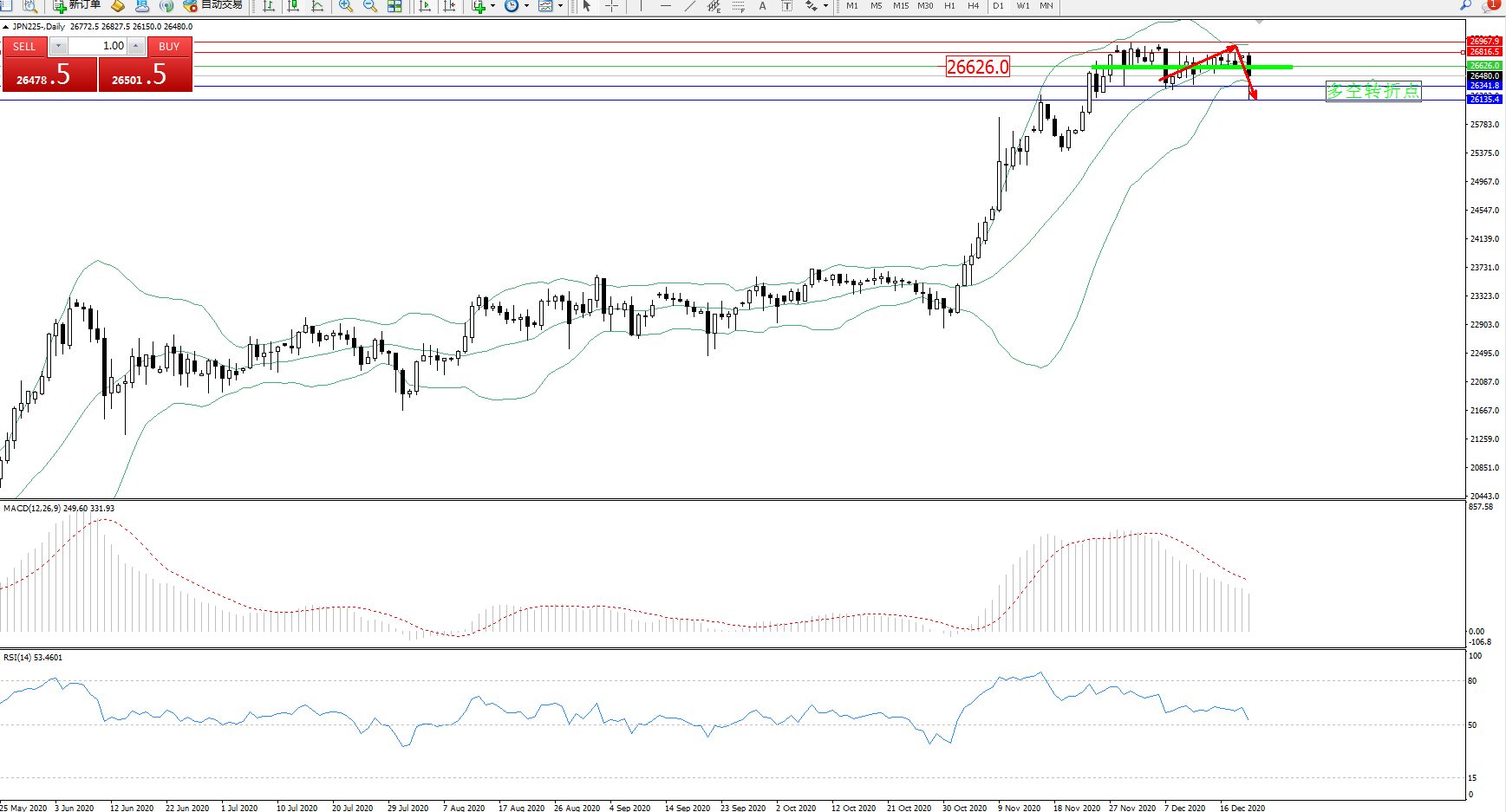 日经225指数12月21日(周一)收盘下跌52.39点,跌幅0.20%,报26711.00点。日本东京报告新增392例新冠肺炎确诊病例。日本防卫预算连续9年增长;日本政府21日召开内阁会议敲定2021财年预算案,其中防卫预算为5.3422万亿日元(1美元约合103.5日元),连续9年增长。日本央行宣布最新货币政策决定,并将旨在缓解企业融资压力的特别计划延长6个月后,日本央行将10年期日本政府债券的收益率目标维持在0%左右,短期利率目标维持在-0.1%;在会后的新闻发布会上,日本央行行长黑田东彦表示,收益率曲线控制运行正常,央行不打算重新审视负利率,或改变超调承诺。新冠病毒在英国出现新变种,大洋彼岸的纽约州长也开始担心了。据美国广播公司(ABC)报道,当地时间20日,纽约州州长科莫批评说,既然有一种新的变种病毒在英国传播,为什么每天仍有航班从英国飞抵纽约机场且没有要求乘客提供核酸检测证明,“我们什么也没做”。