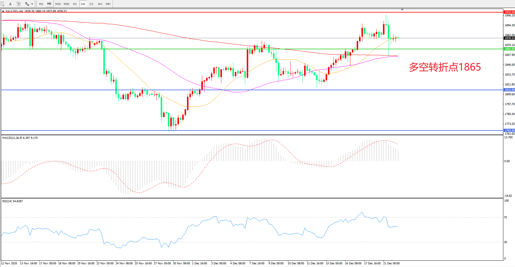 未来一段时间,市场会继续关注欧美圣诞节前后的疫情进展,如果继续维持恶化状态,黄金价格将会维持涨势。美国财政刺激落地后,市场上另外一个焦点是英国脱欧话题,目前脱欧谈判进入倒计时,可能随时出现意外情况,总体市场多头氛围浓厚,但中线可能面临美元反弹的风险。