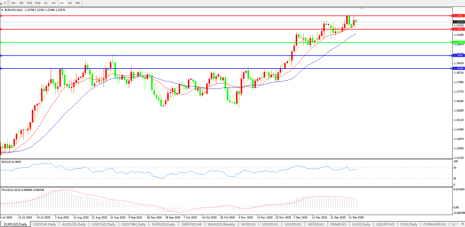 美元指数在周一欧洲时段继续下跌,继续刷新2018年6月以来新低至89.42,而非美货币则受此影响纷纷续涨刷出新高。一方面,2020年底以来投资者押注美联储后市会有更强力宽松行动而抛售美元的交易仍在延续,另一方面,美国政局及政策前景所存在的不确定性也更令市场忌惮; 美国佐治亚州将于周二举行参议员补选,将决定国会参院的归属权,民主党必须赢下全部两席方可夺得参院多数席次,而一旦两院继续分治,会令美国未来财政政策前景更添不确定性。同时,美国总统选举结果在1月6日的最终认证过程也仍存在玄机,这让当前的局面更加错综复杂,并且也是推动投资者继续出脱美元多头仓位以应对可能出现的不测消息之推手。在此状况下,美元指数下行趋势只能变本加厉,后市短线有进一步下踩89关口的可能性,而上方只有在重新站稳上周四功亏一篑未能收复90关口之后,短线跌势才能暂告一段落,因而,在美国选情消息出炉前,制造业经济数据的表现也会受到额外瞩目。