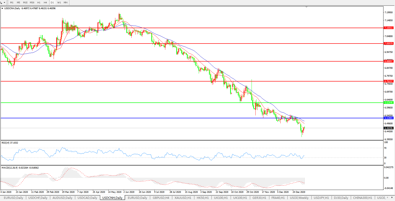 备选策略: 在6.6265之上,看涨,目标价位为6.7615,然后为6.8889。