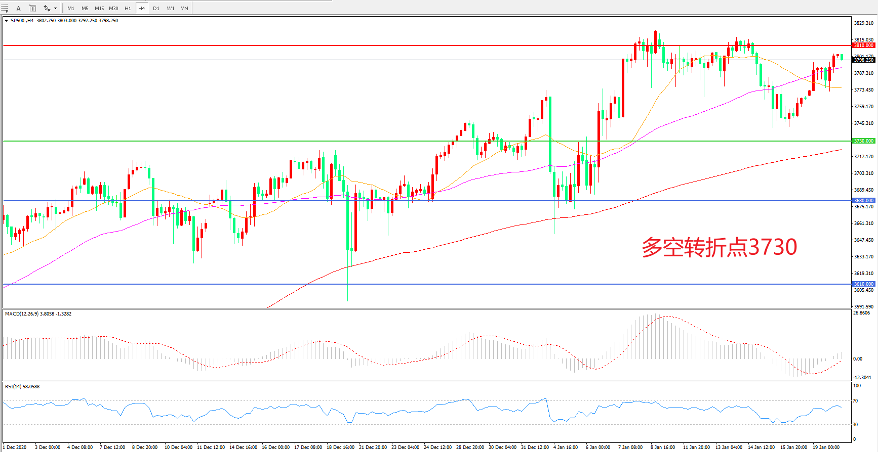 周二(1月19日),拜登即将宣誓就职,耶伦发言支持更多财政刺激,通货膨胀交易回暖,美股在能源和科技股带领下反弹,标普500大幅回升,收报3799.75点。大型科技股中,Facebook 涨超3%,微软涨超1%。耶伦对刺激计划的关注和支持为市场继续走高奠定了基础。