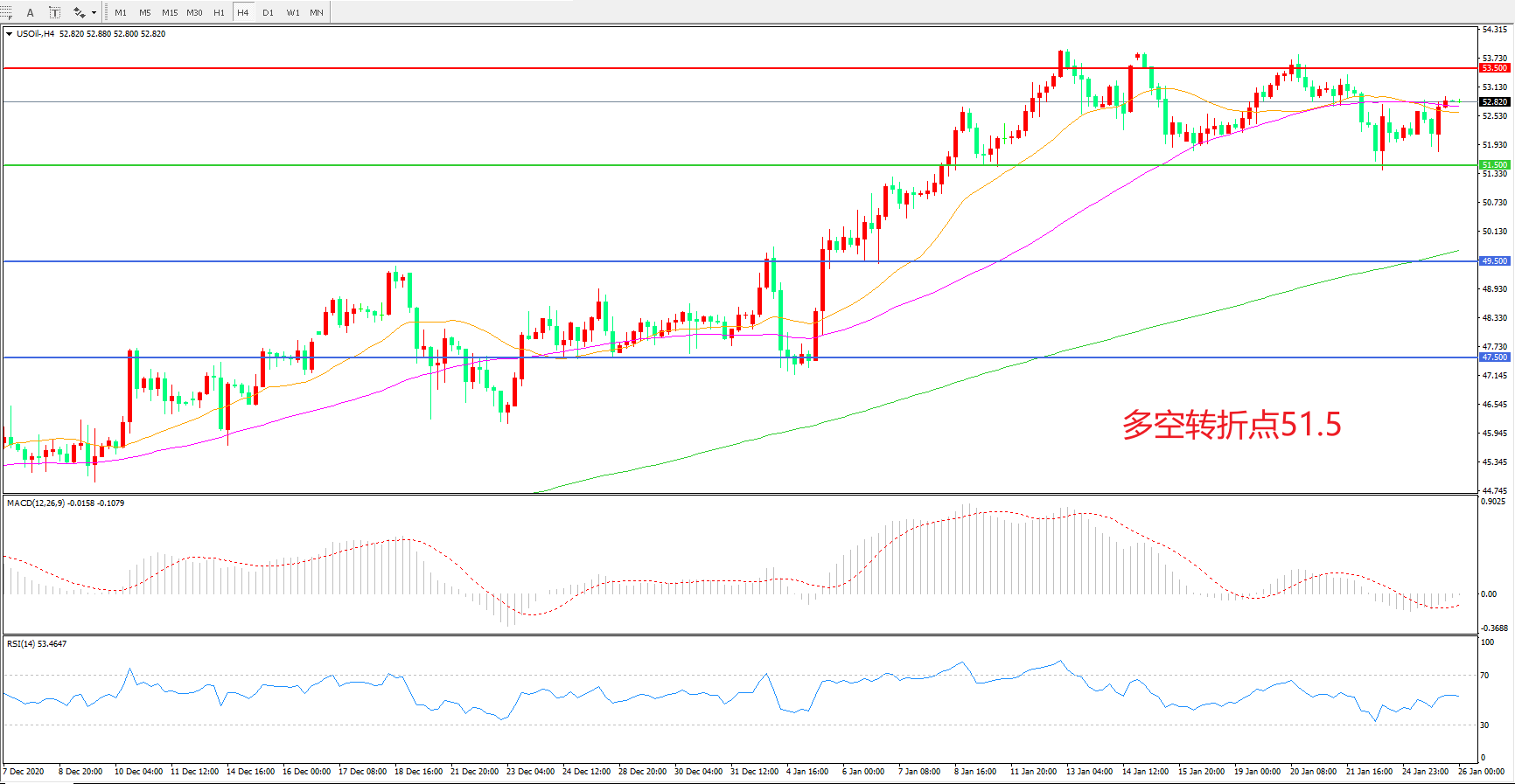 多空转折点:51.50
