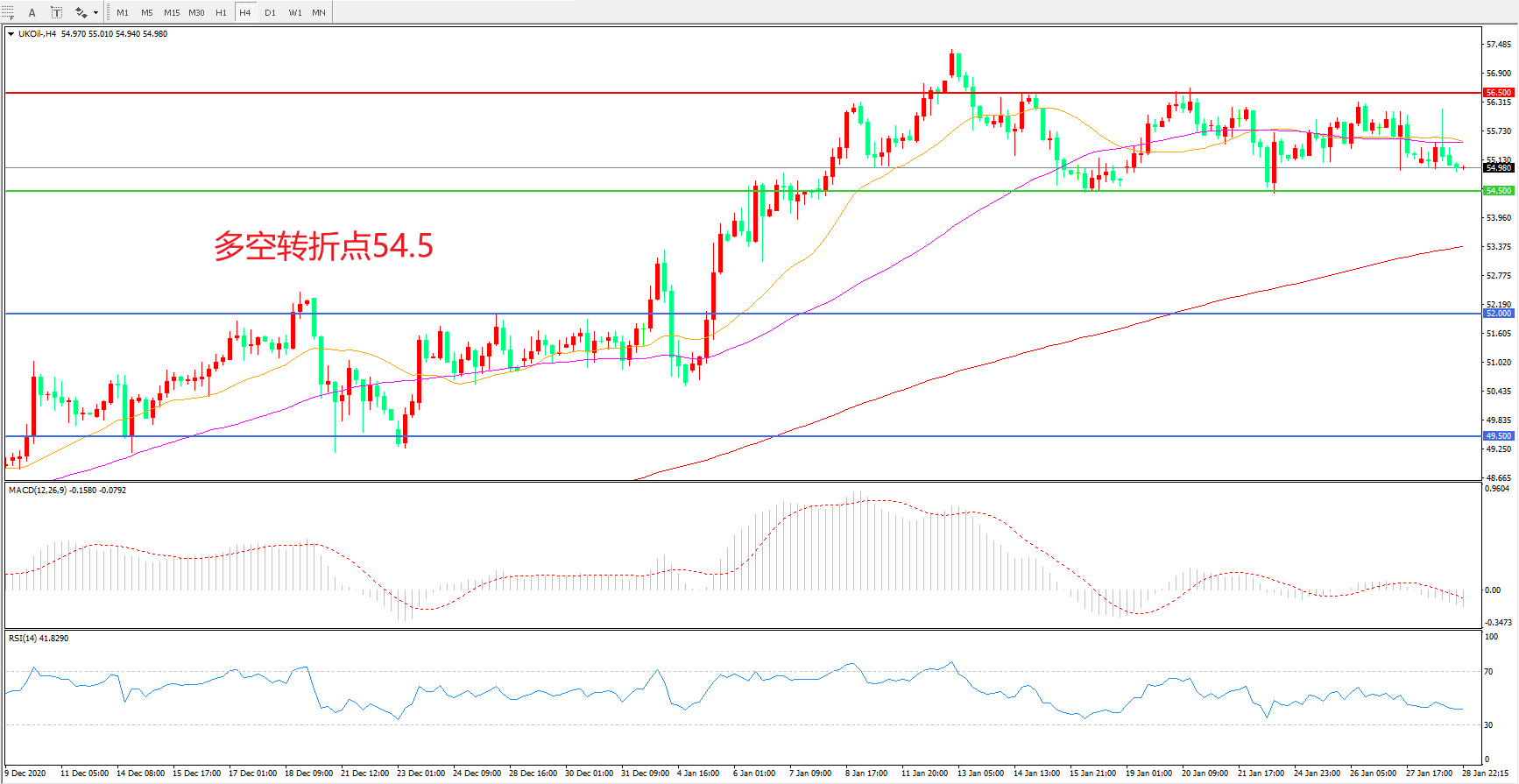 周四(1月28日),美国两党在环境努力方面仍然存在分歧,共和党议员们现在正联合起来反对拜登的气候议程,市场多空情绪交织,布伦特原油冲高回落,收报54.98美元/桶。目前美股的走势也比较的脆弱,前一天大幅下行之后,昨天呈现冲高回落形态,宏观市场传递出了一种不安的信号。