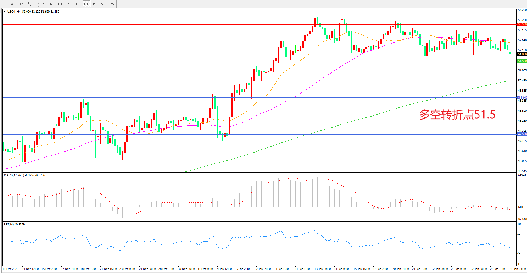 多空转折点:51.50