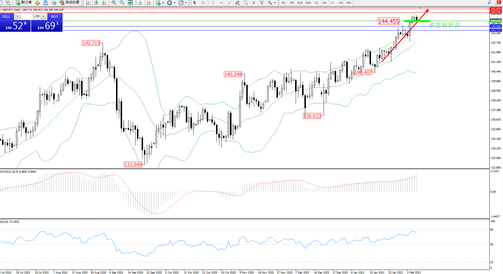 技术点评:多头动力延续布林带指标通道中上轨区间持续震荡上扬,多头屡破新高,布林带指标呈缓慢上扬走势后缓慢张口,多头动力尚未有止步迹象,MACD指标处于多头区域呈缓慢向上移动走势良好,RSI指标处于多头区域维持整理平缓上扬至80均衡线下方弱势徘徊中;