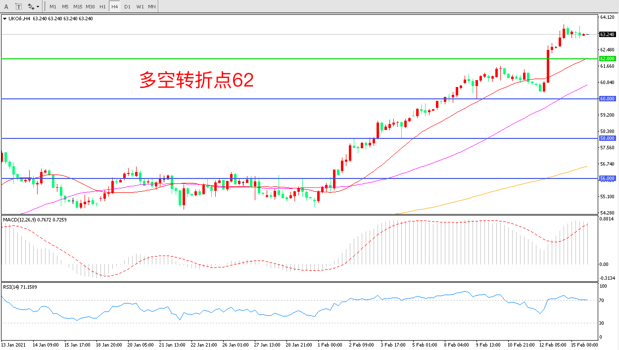 交易策略: 在62.00之上看涨,目标65.00 68.00